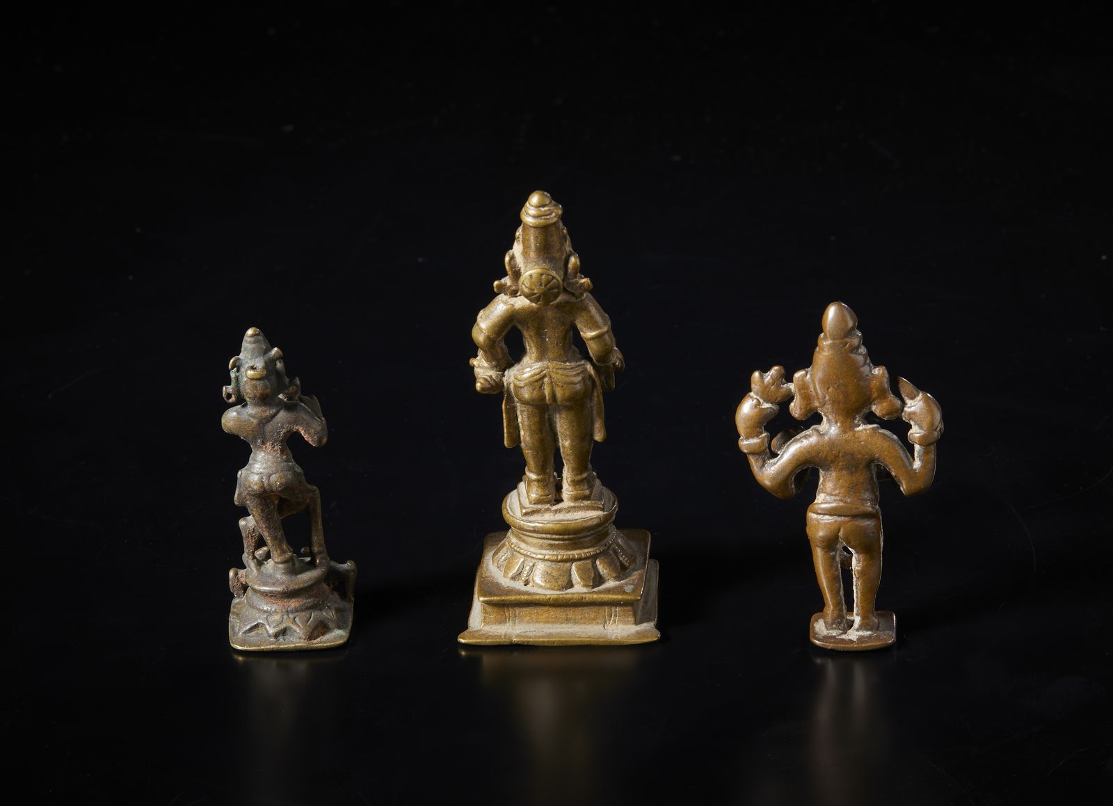 Tre figure devozionali in bronzo raffiguranti deitą della mitologia Indł.Sud India, [..]