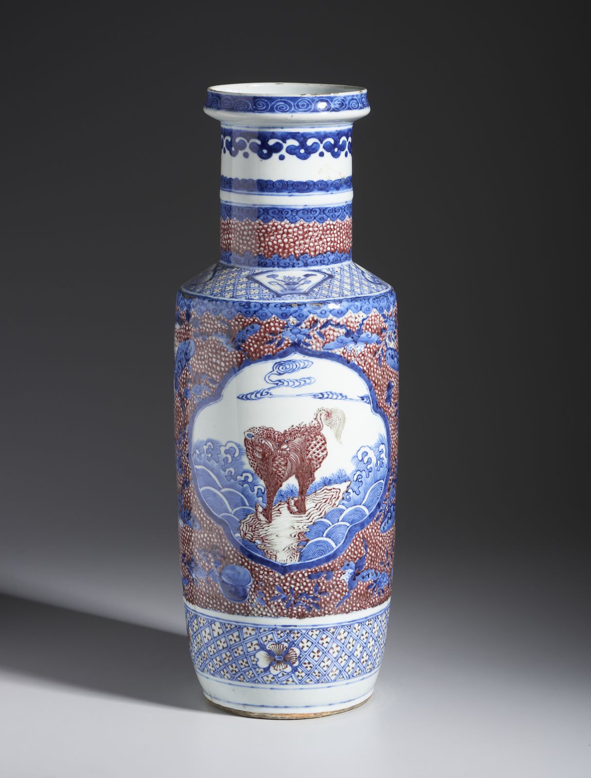 Vaso in porcellana in blu e rosso. Cina, Dinastia Qing, XIX sec.
