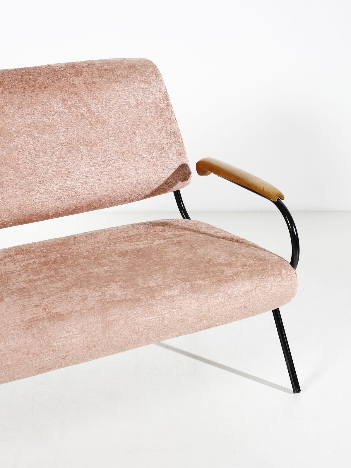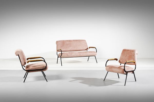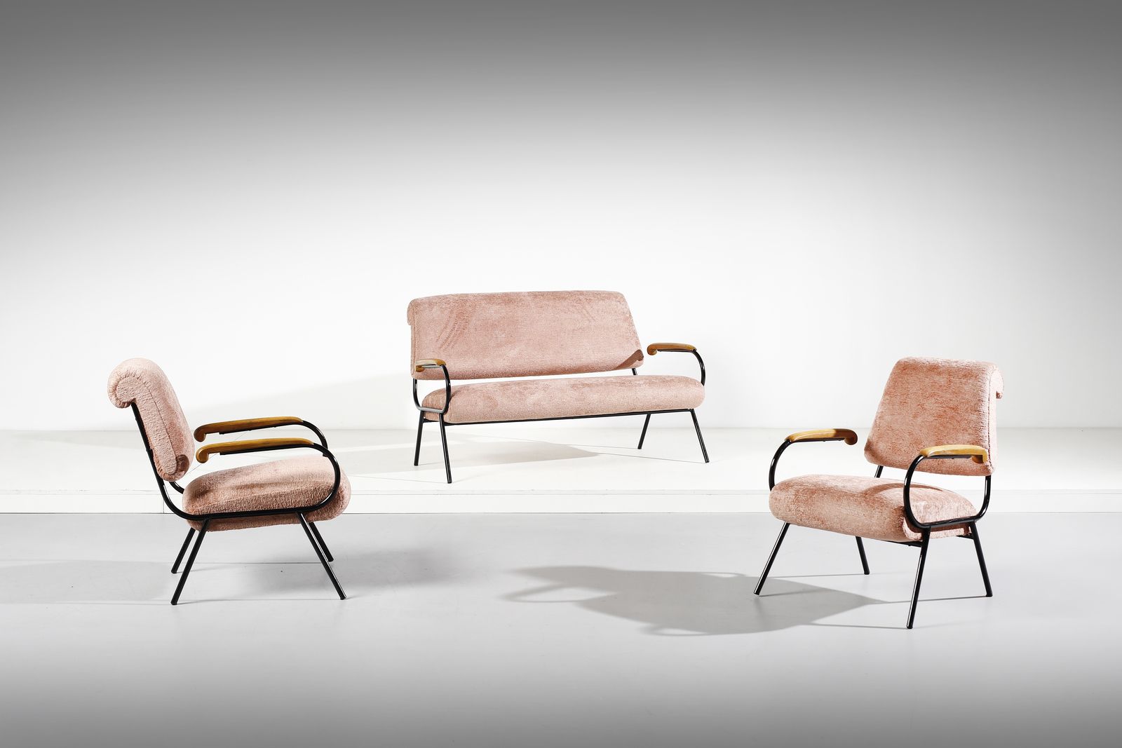 Anni Cinquanta. Dimensioni: divanetto 78 x 135 x 80 cm. poltrone 78 x 56 x 80 cm