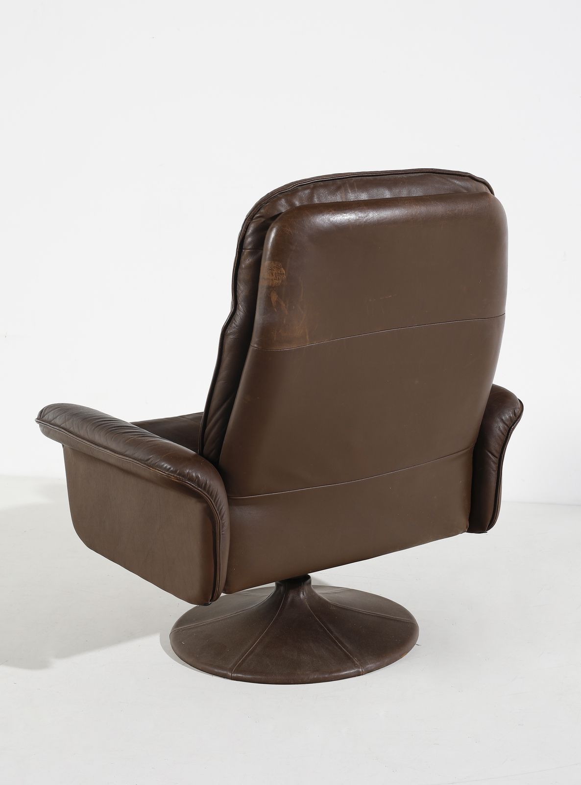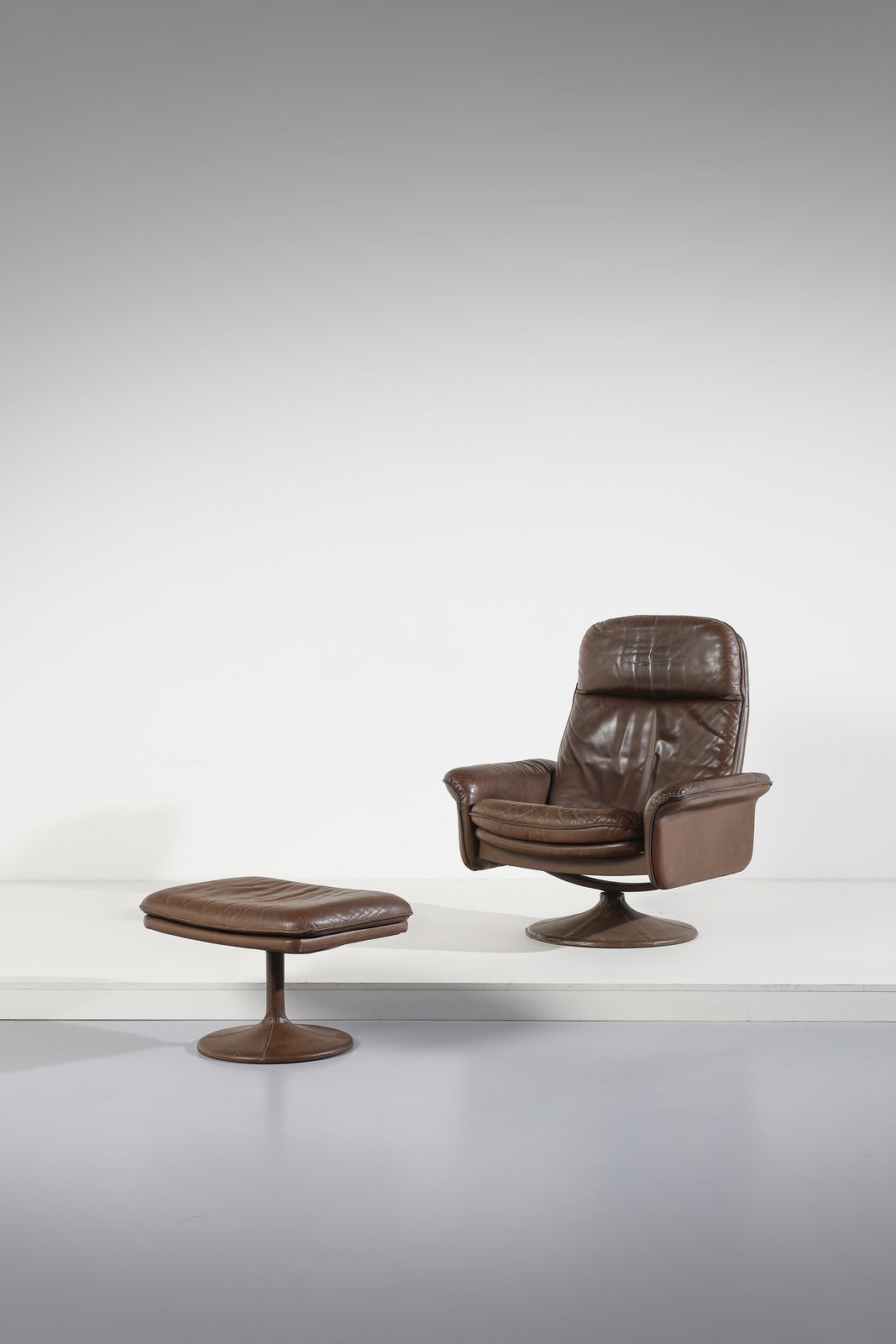 Anni Settanta.Marchio della produzione.Dimensioni: poltrona 100 x 87 x 80 cm. poggiapiedi 60 x 43 x 40 cm