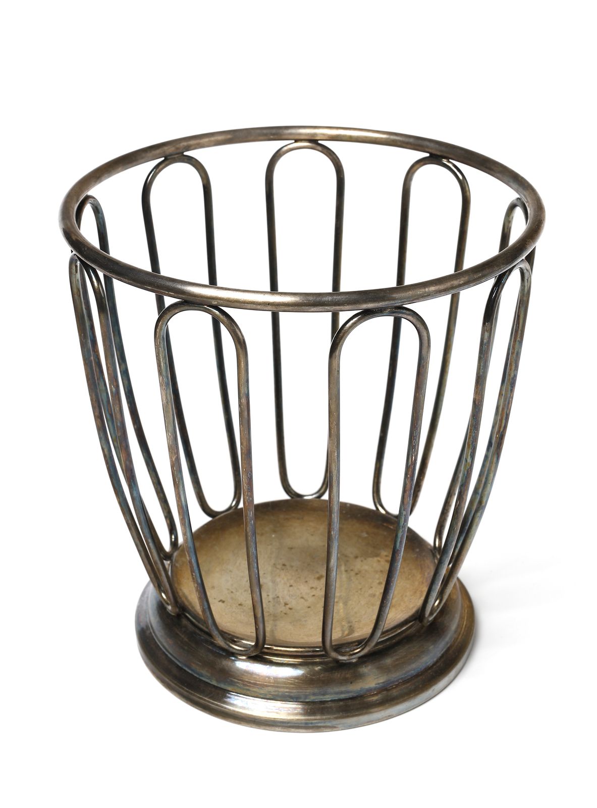 Anni Trenta.Marchio della produzione.Dimensioni: portaghiaccio 25 x 30 cm. portafrutta 23 x 22 cm. candelabri 17 x 6,5 cm