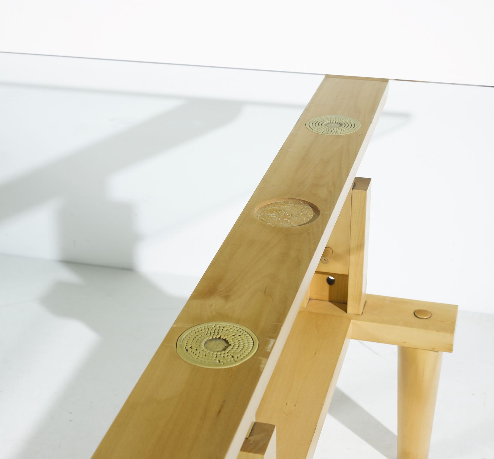 Marchio della produzione sui cavalletti. Piano non prodotto da Zanotta.