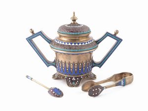 Zuccheriera in argento e smalti coisonné, Mosca 1891