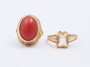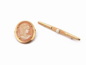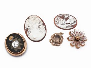pendente cm 4,5x2,5 (5) composto da un pendente in oro giallo 14 kt ed ametista sintetica, una spilla ovale in [..]