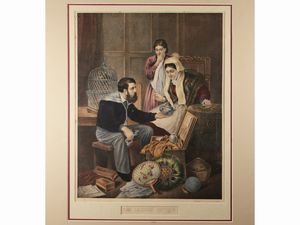 passe-partout cm 80x64 XIX secolo litografia, colorata, con passe-partout
