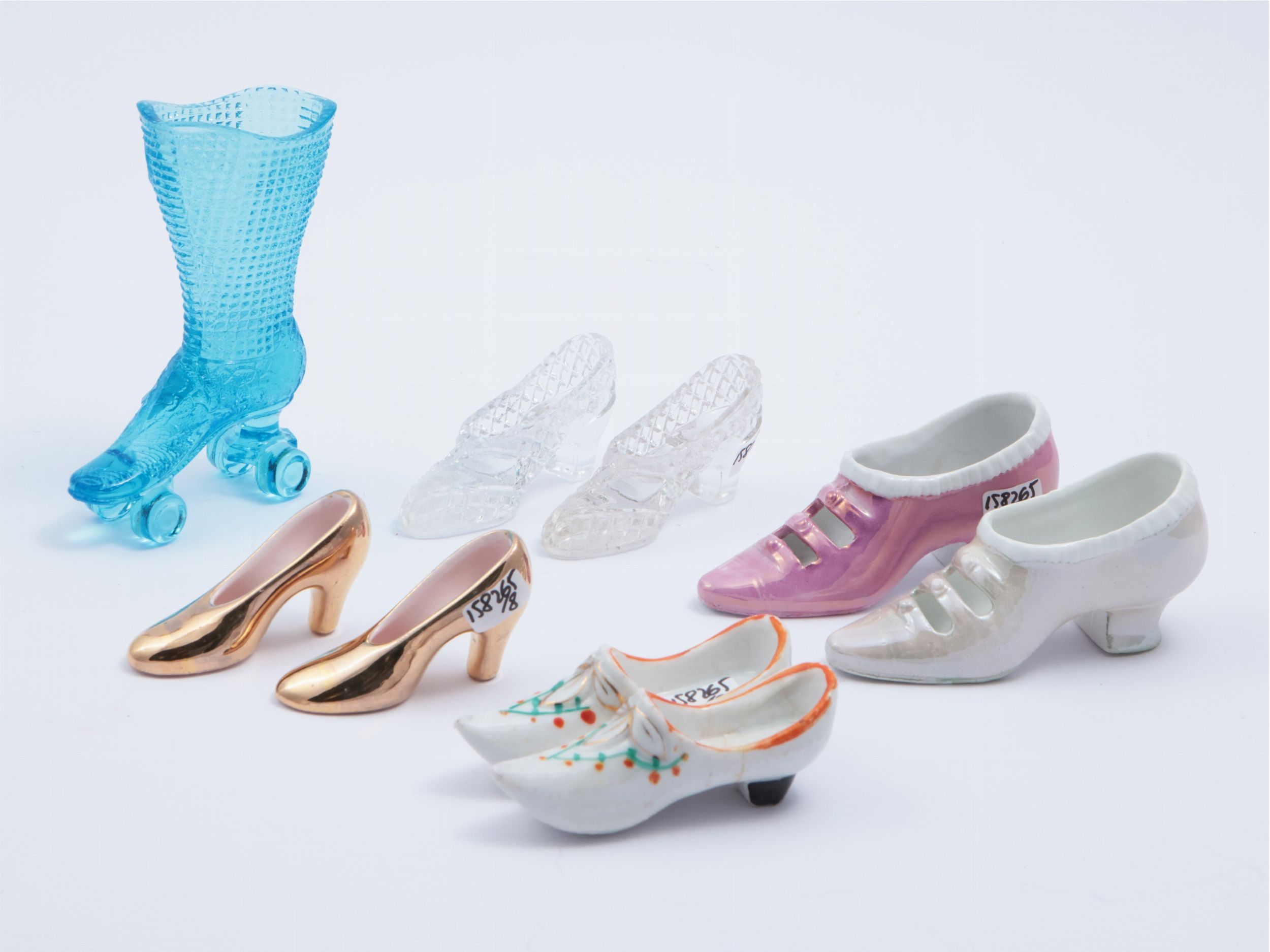 Quattro paia di scarpette portafortuna in ceramica, prima metà del XX secolo