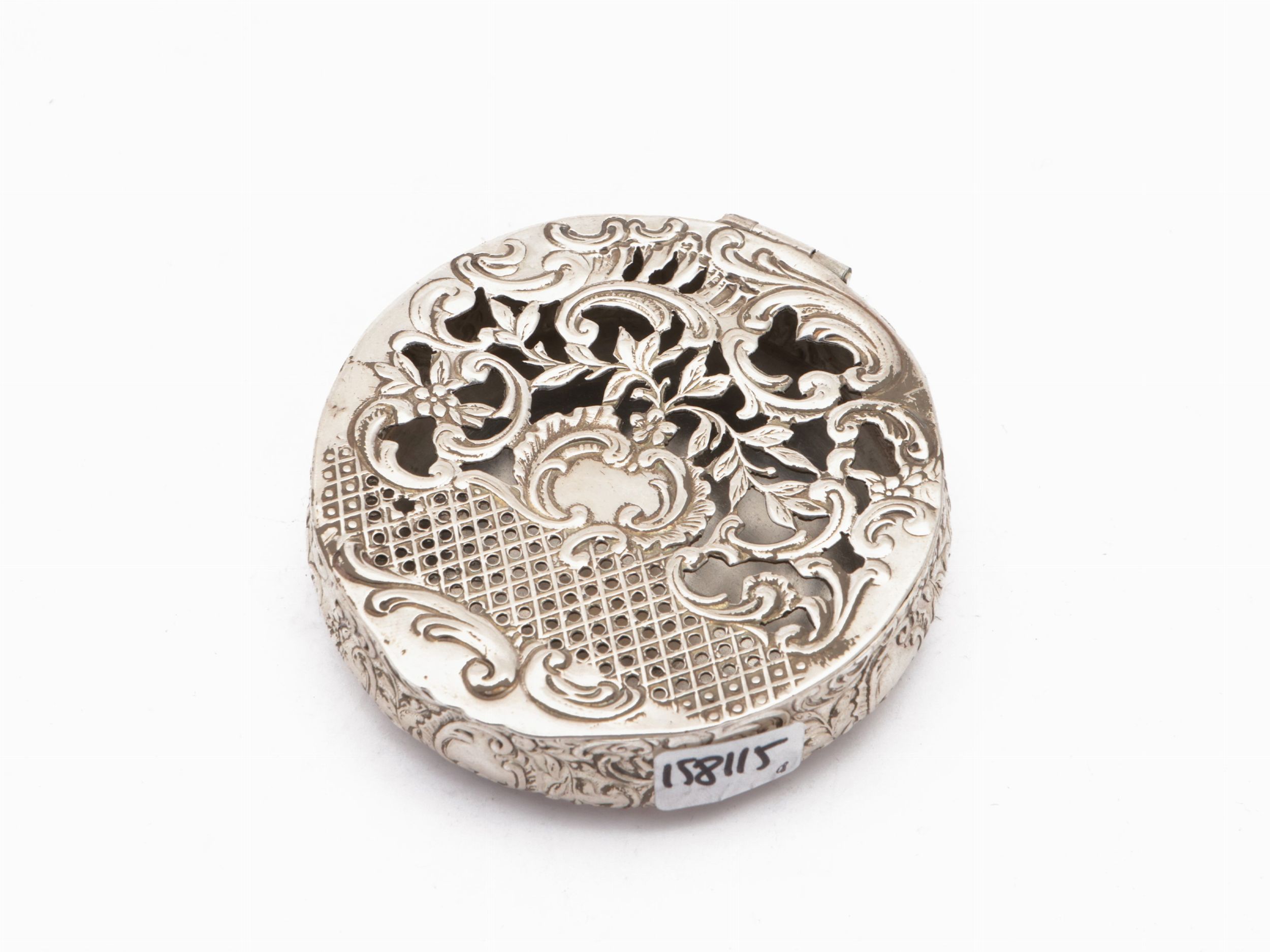 Scatola circolare porta essenze in argento, Londra 1893