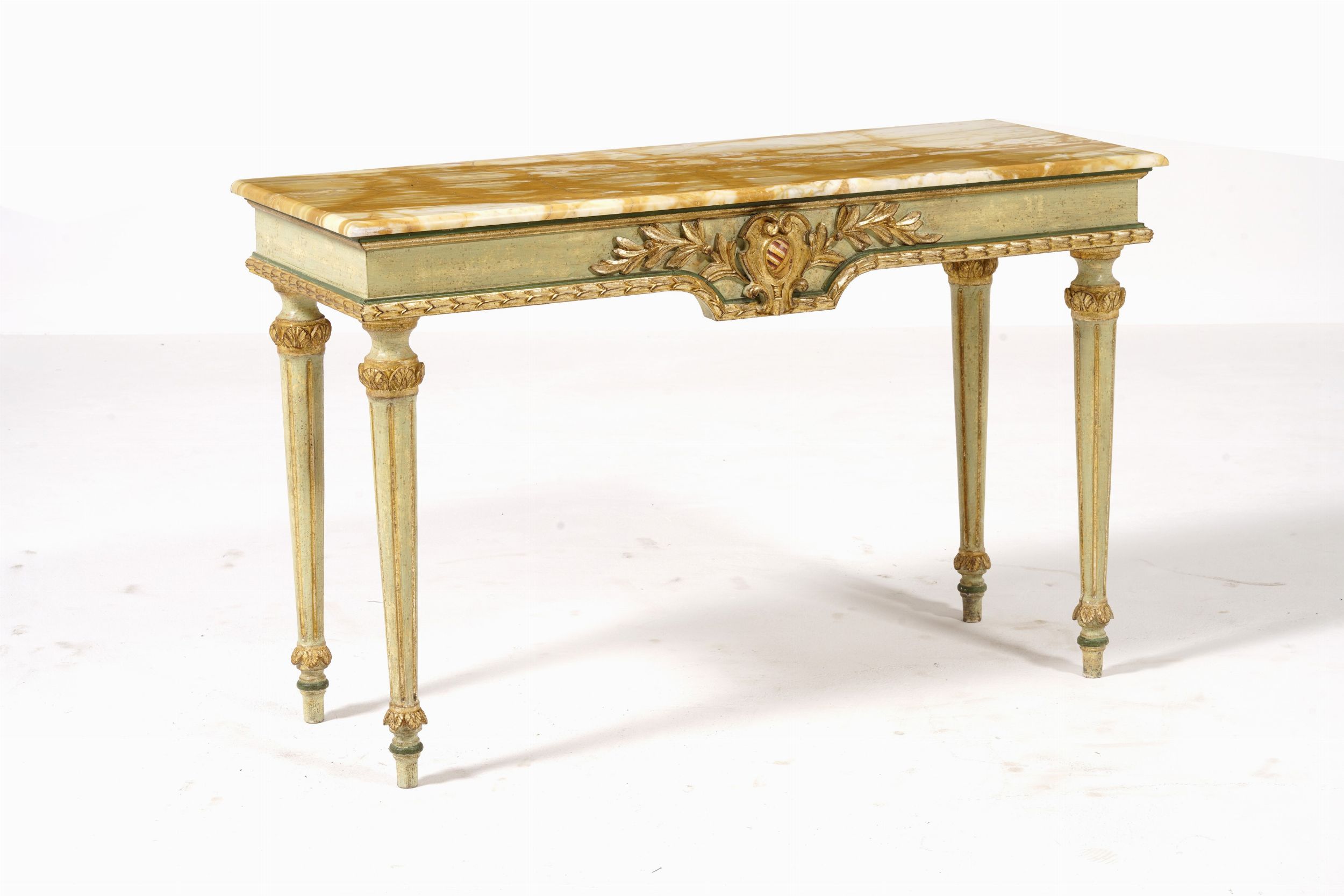 Consolle in legno intagliato, dipinto e dorato. XX secolo