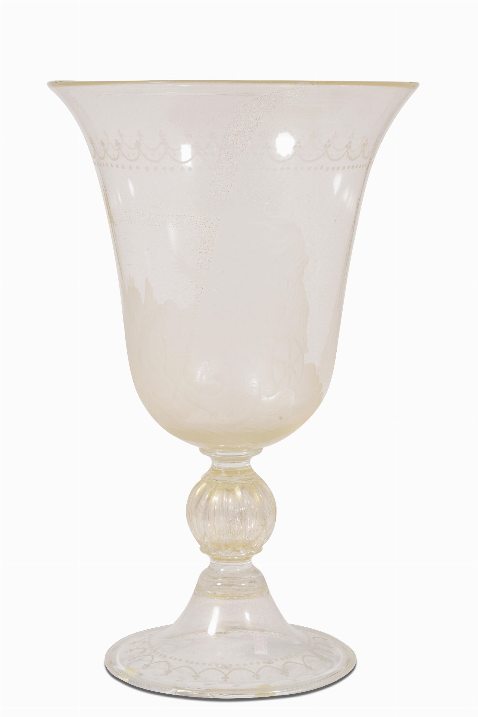 Coppa in vetro di Murano inciso e lavorato in oro. XX secolo