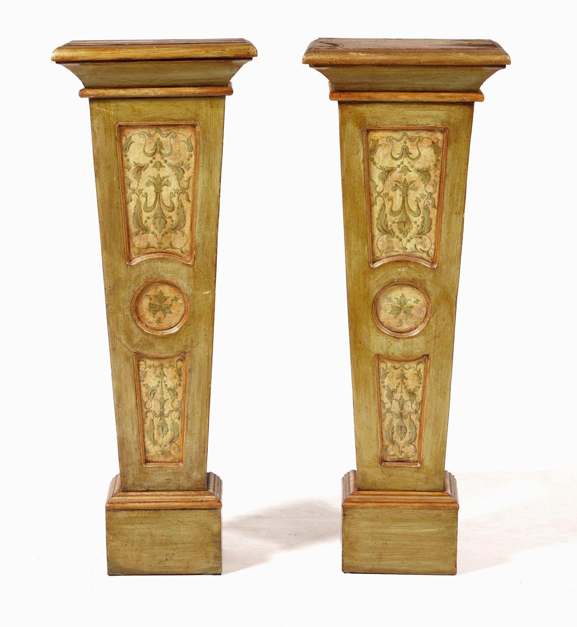 Coppia di colonne reggibusto in legno dipinto. XX secolo
