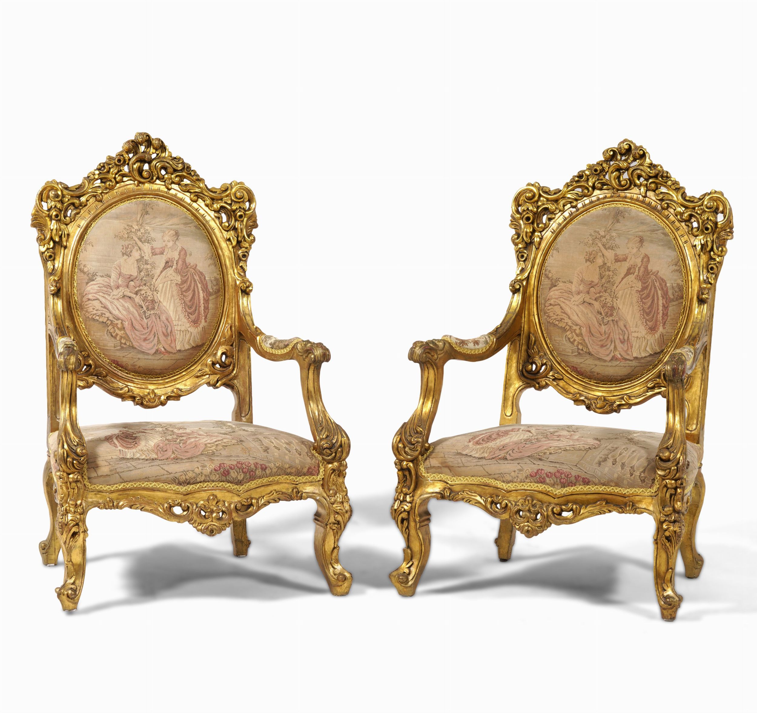 Coppia di poltrone in legno intagliato e dorato. Inizio XX secolo