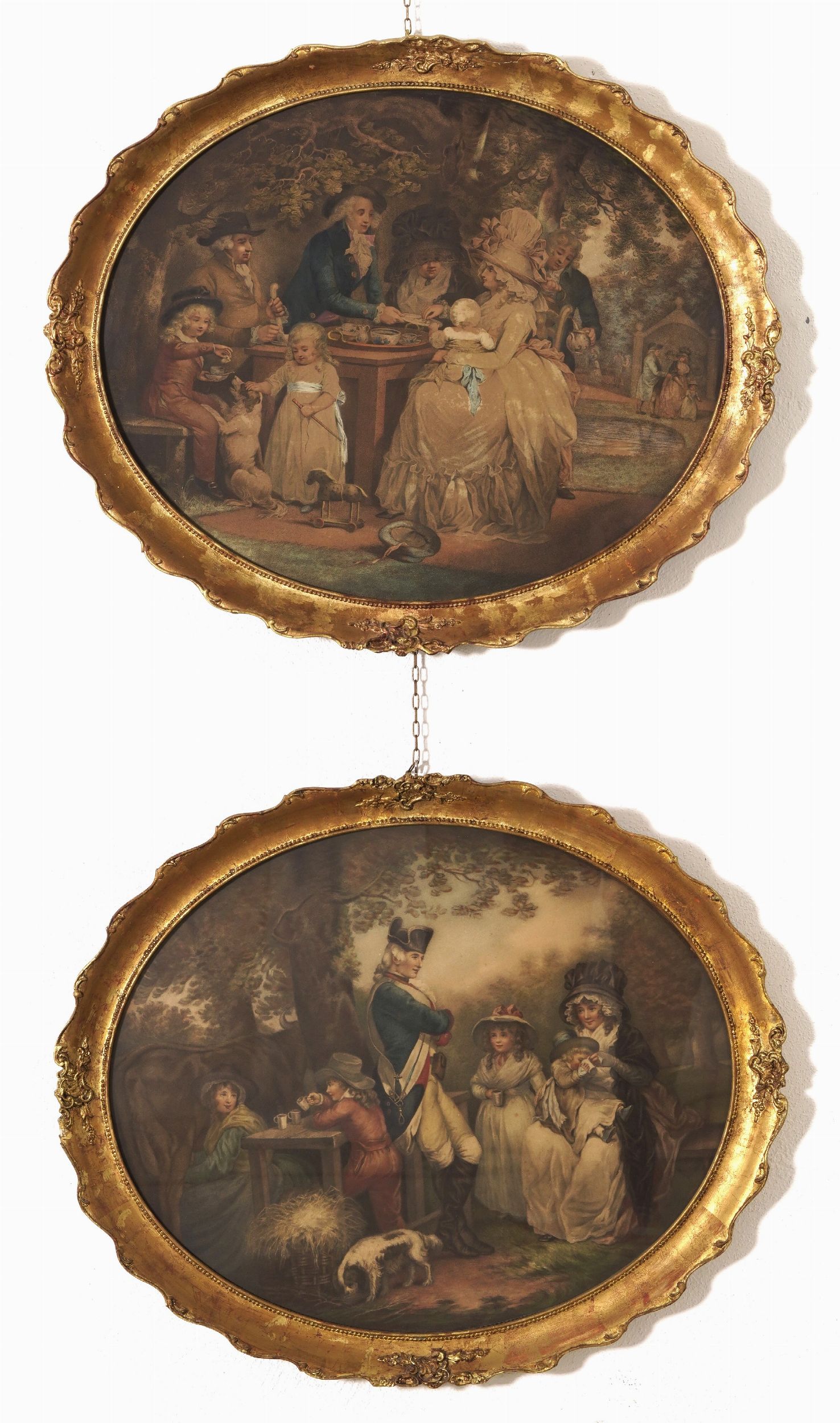 Coppia di stampe con scene di vita quotidiana. XX secolo