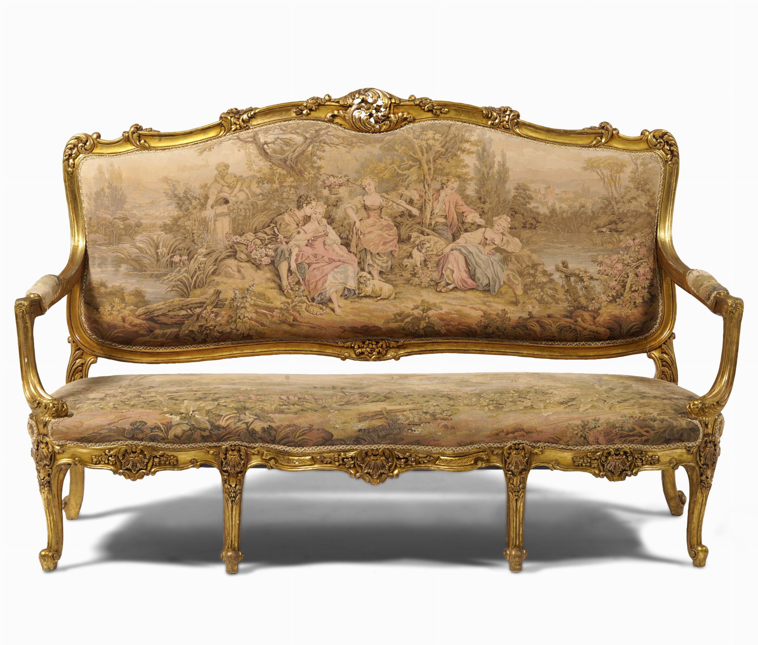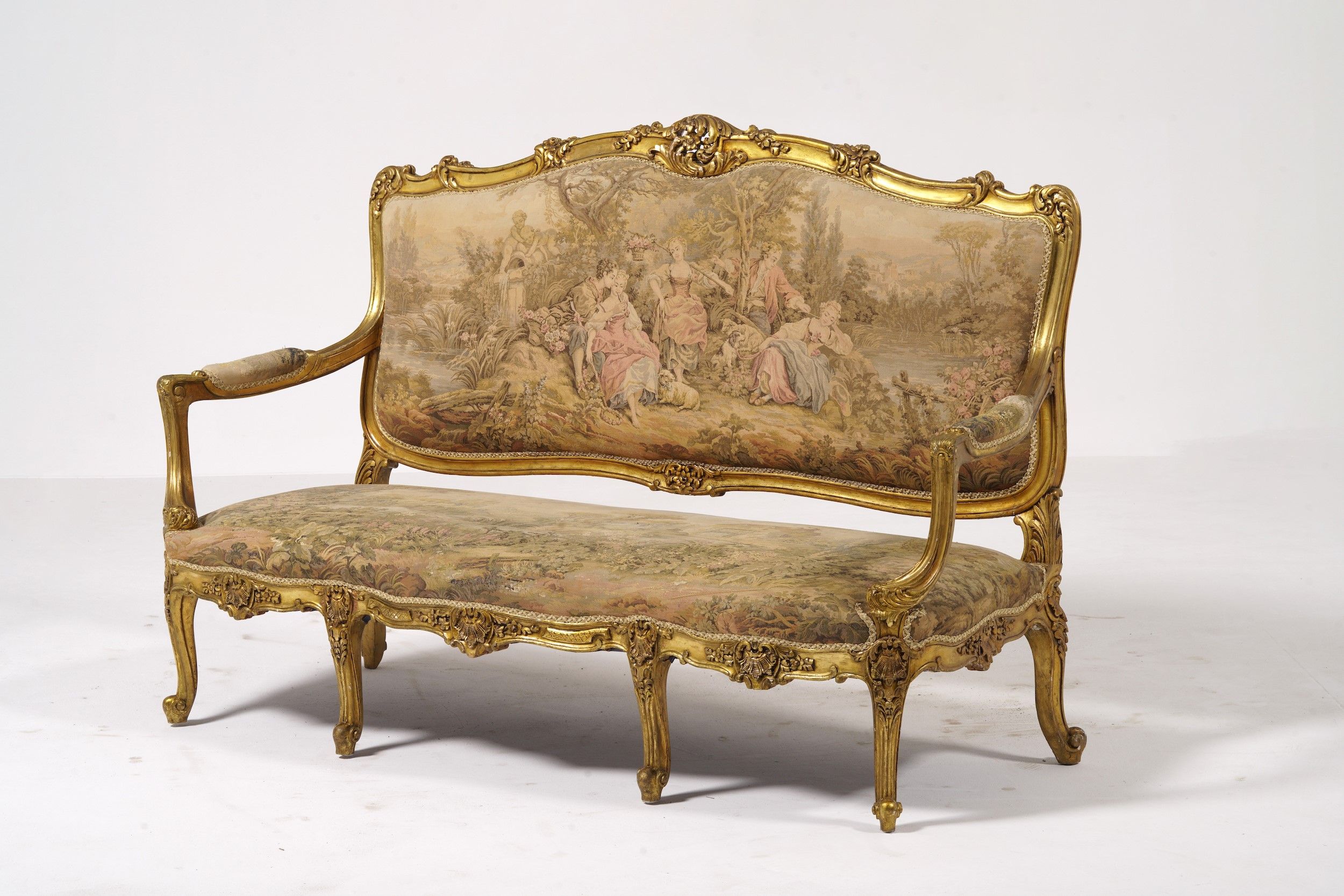 Divano in legno intagliato e dorato. Inizio XX secolo