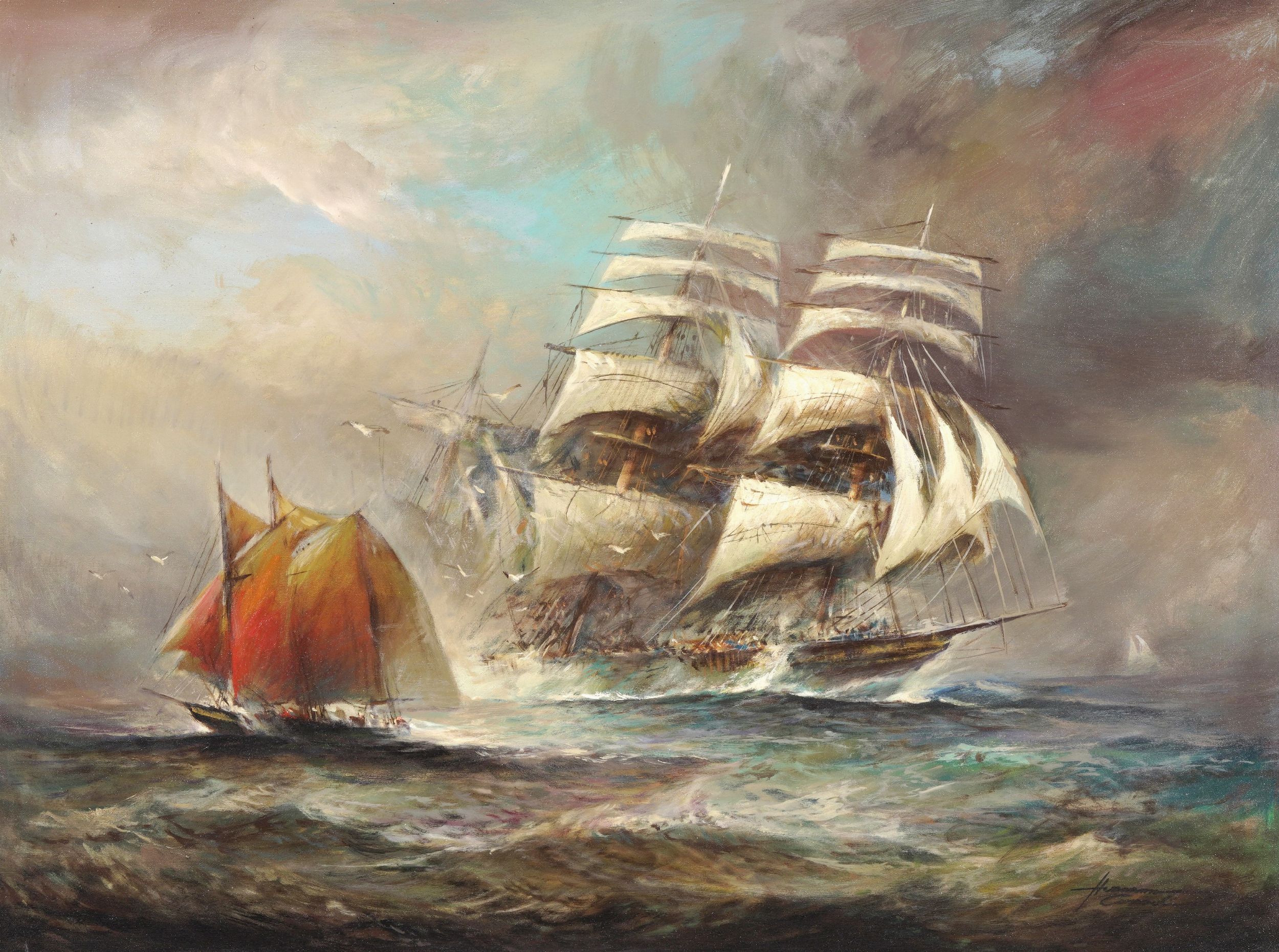 Herman Conrad (Napoli 1935) Veliero in mare