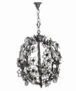 Lampadario in metallo e vetro a mongolfiera. Stile antico