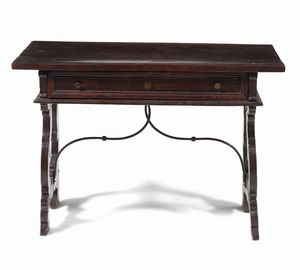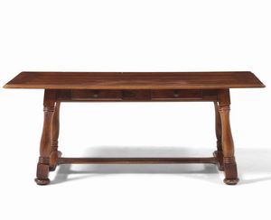 Tavolo in legno con montanti a lira. XIX secolo