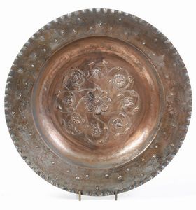 Grande bacile in rame sbalzato. Fine XIX, inizi XX secolo