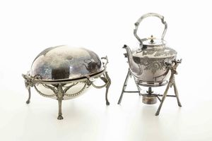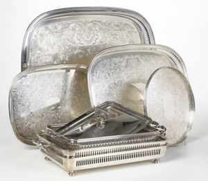Lotto di tre vassoi; metallo, rame argentato e peltro
