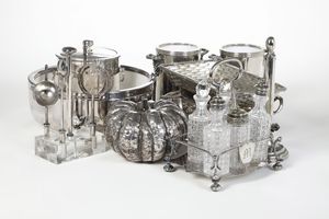 Coppia di lampade da tavolo e coppia di candelieri in metallo XX secolo
