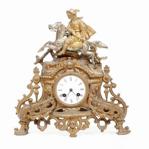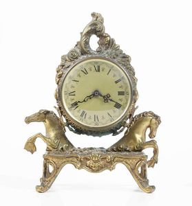 Pendola da tavolo in metallo dorato. XIX-XX secolo