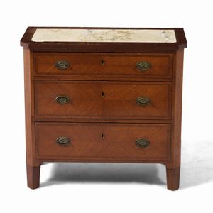 Coppia di comodini a due cassetti in legno intarsiato. XX secolo