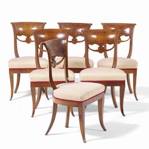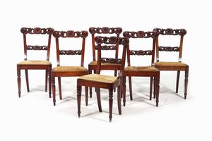 Sei sedie tipo Peters in legno intagliato. XIX secolo