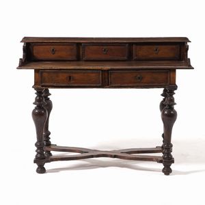 Scrivania San Filippo in noce con gambe riunite a crociera. Piemonte, XVIII seco [..]