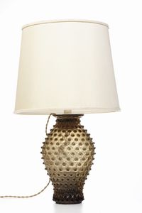 Vaso bugnato a fondo ambra, montato ad abat jour. Manifattura recente