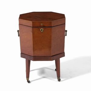 Wine cooler in mogano con profili in legno chiaro, Inghilterra, XIX secolo