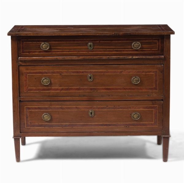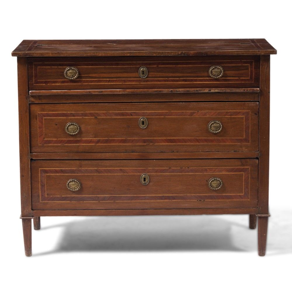 Coṃ con scrittoio in noce filettato. XVIII-XIX secolo