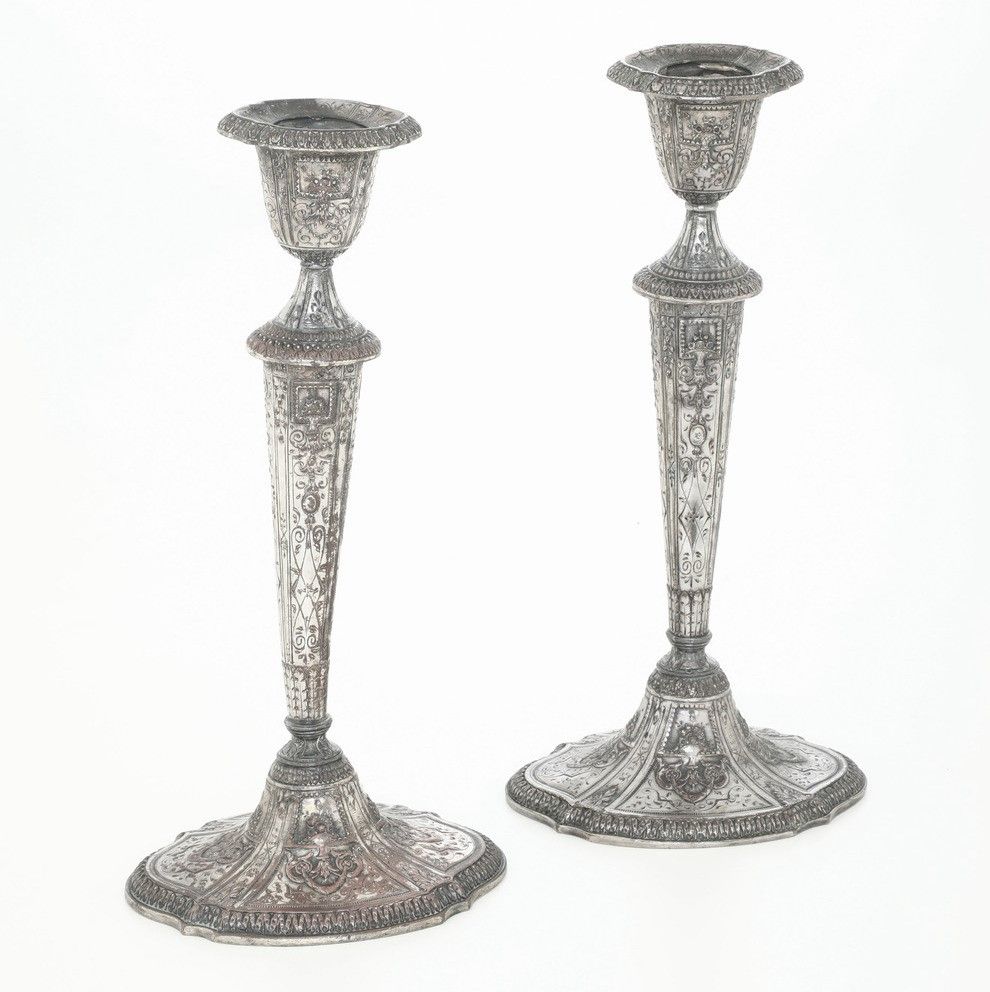 Coppia di candelieri in metallo argentato