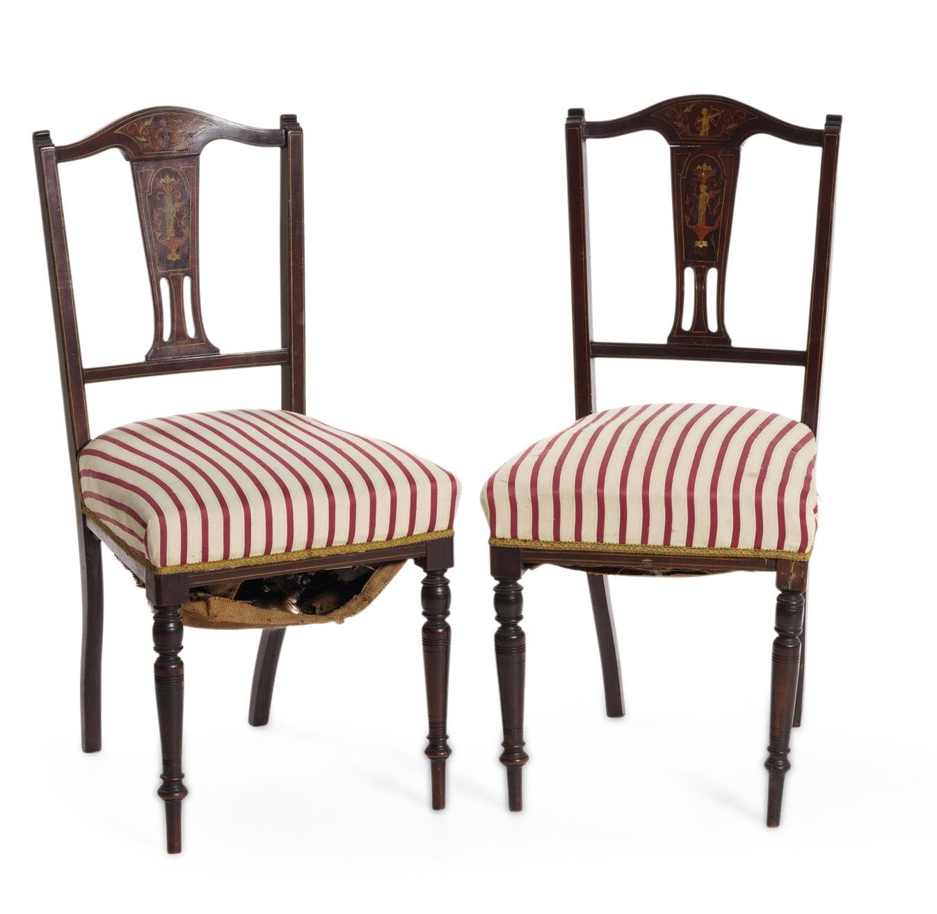 Coppia di sedie in legno intarsiato. Inghilterra XIX secolo