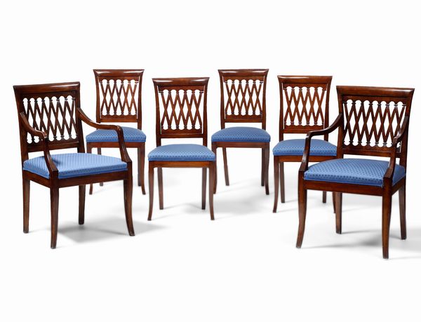 Insieme di due poltrone e quattro sedie in mogano. Inghilterra XIX secolo
