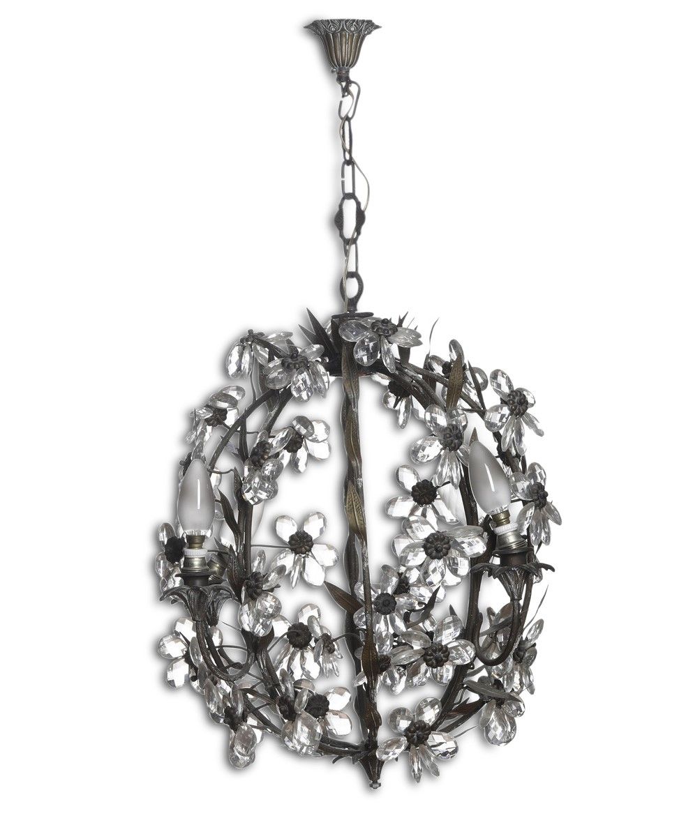 Lampadario in metallo e vetro a mongolfiera. Stile antico