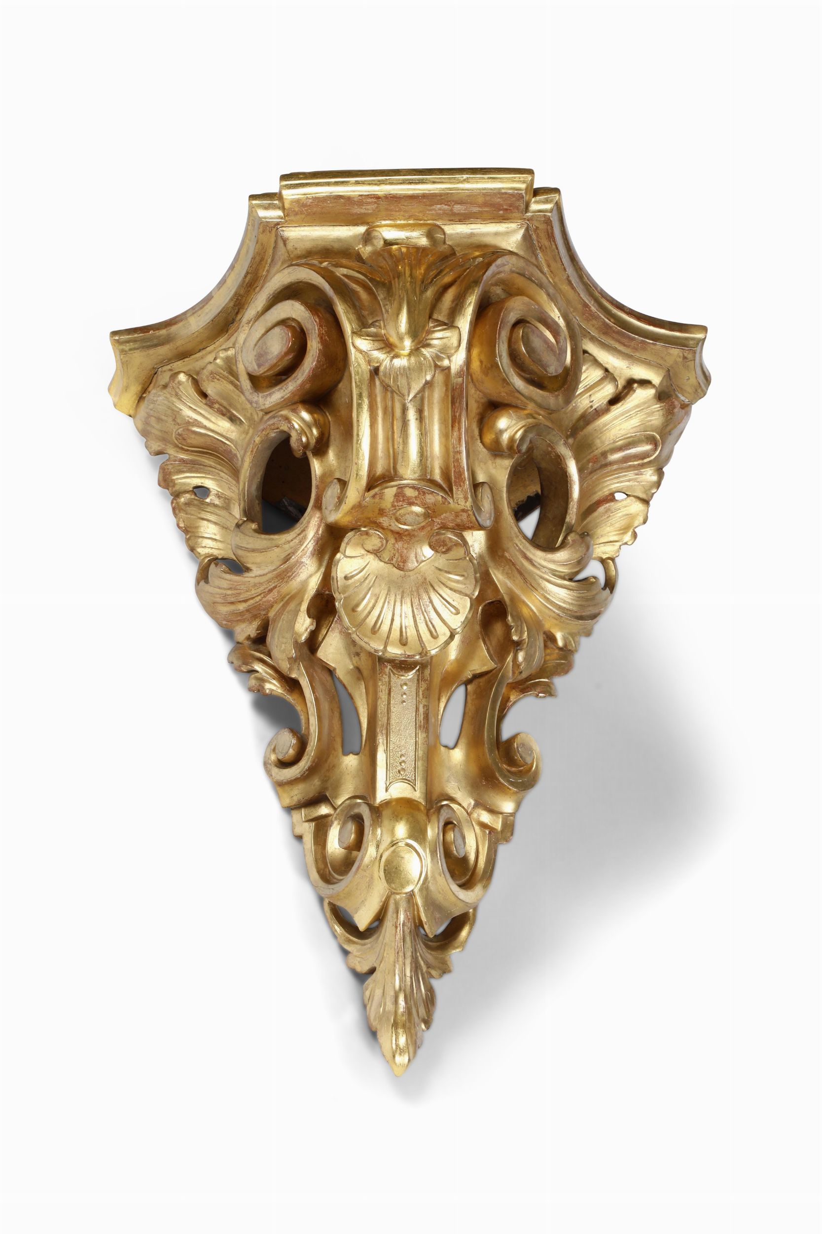 Mensola angolare in legno intagliato e dorato. XVIII secolo