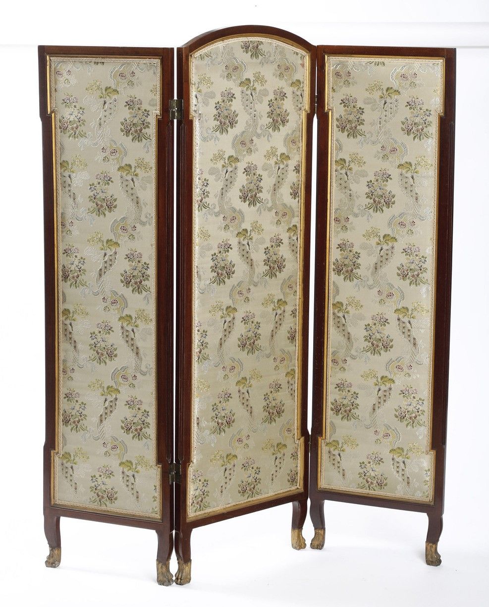Paravento a tre ante in legno e seta. XIX-XX secolo