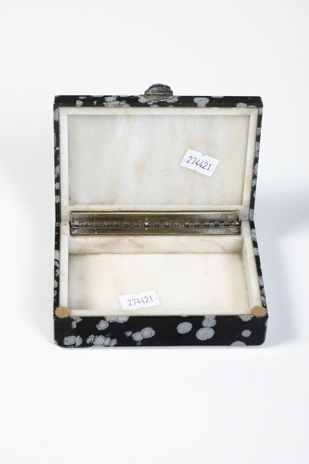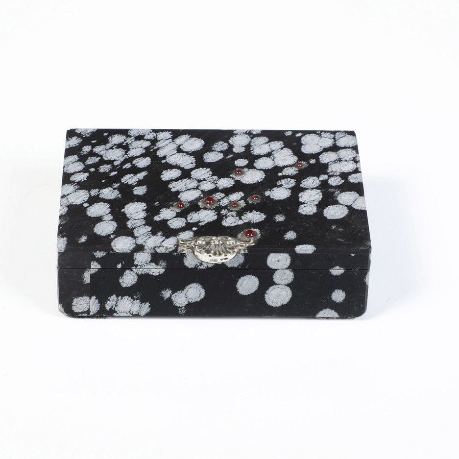 Scatola in ossidiana con presa in argento e cabochon rossi, Manifattura Stefani [..]