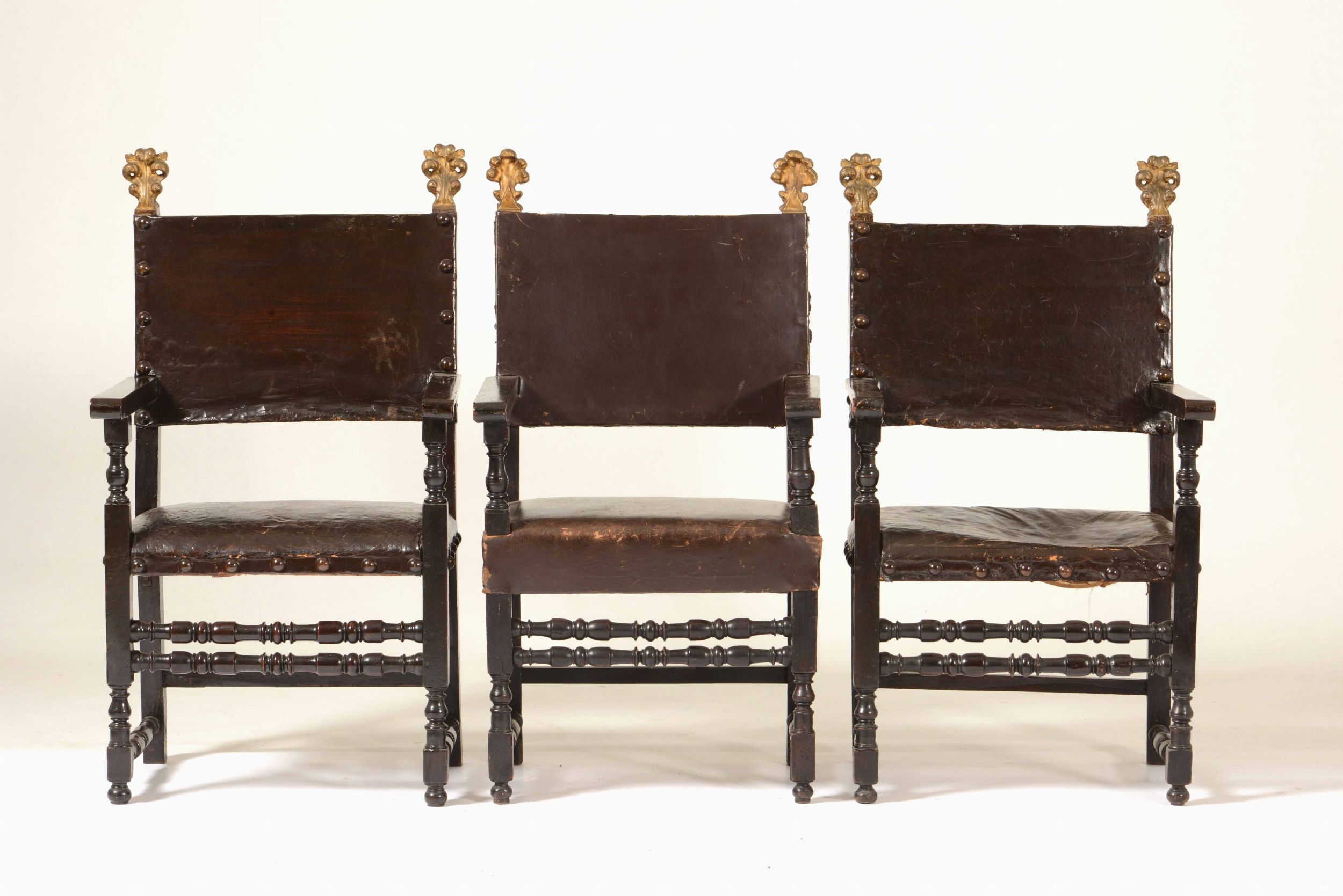 Tre seggioloni in noce scurito. Italia meridionale, XVIII secolo