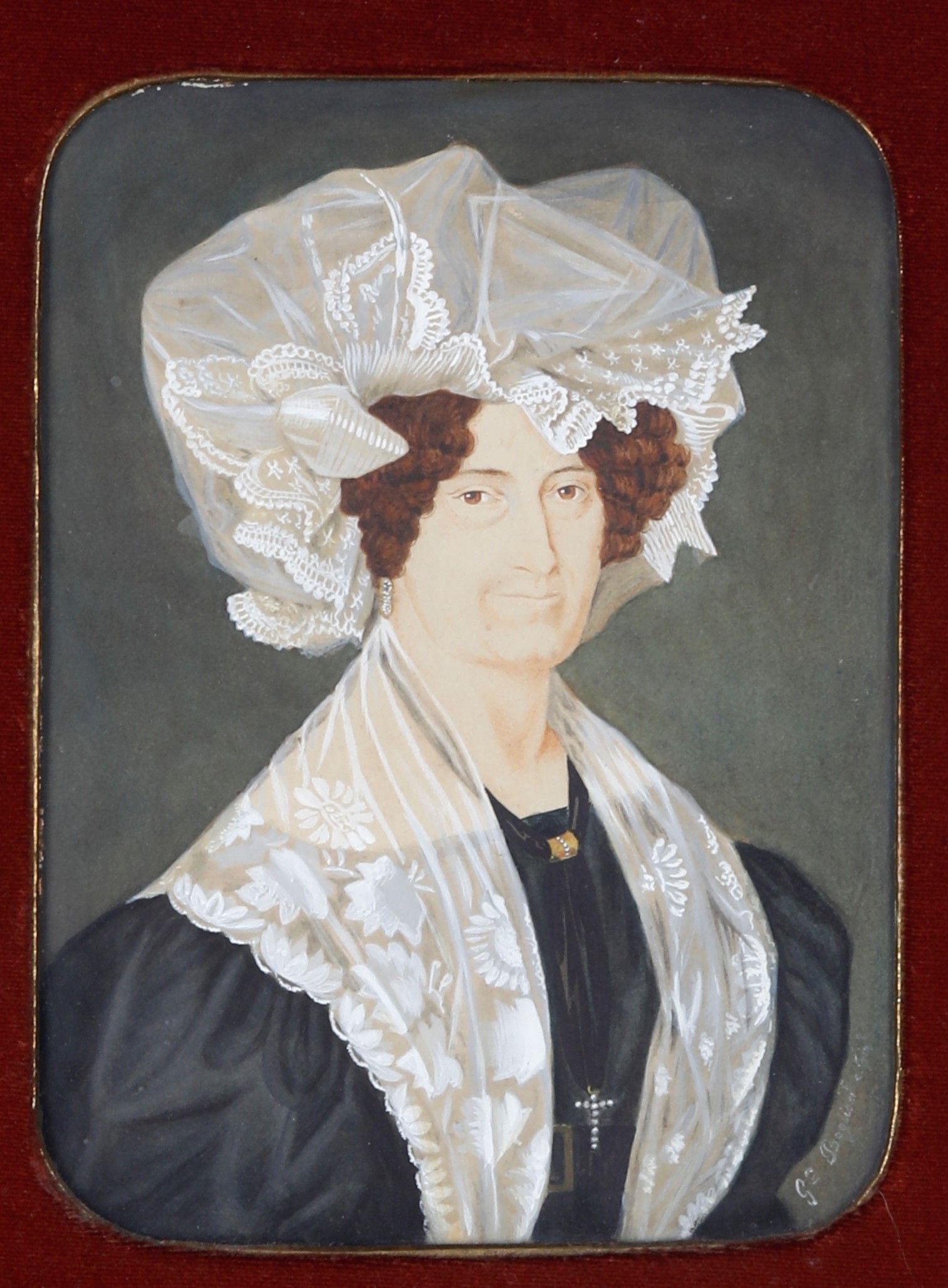 Anonimo XIX secolo Ritratto di dama con cuffia