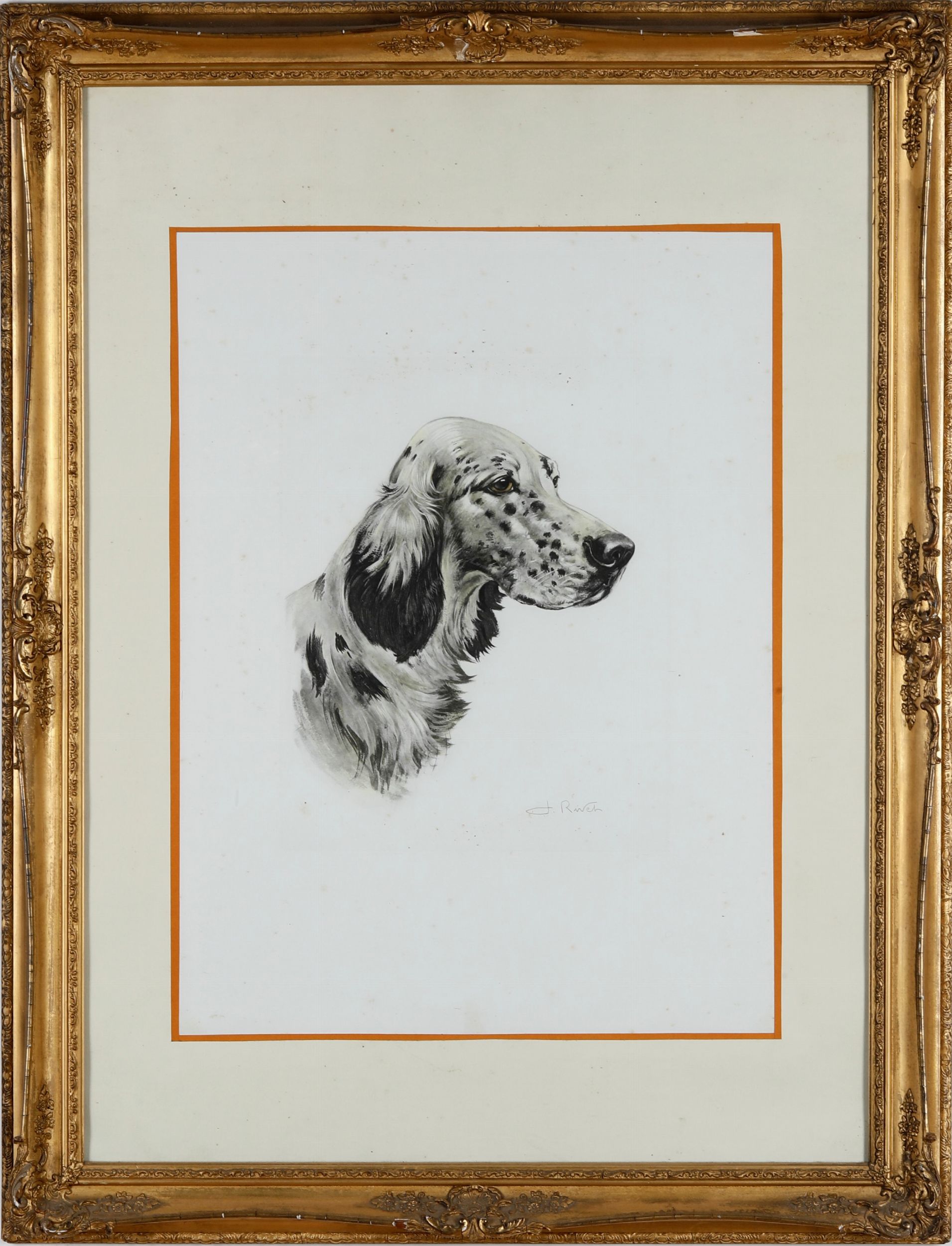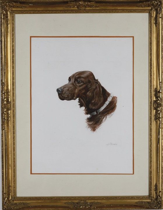 Coppia di dipinti raffiguranti teste di cani razza setter, firmati