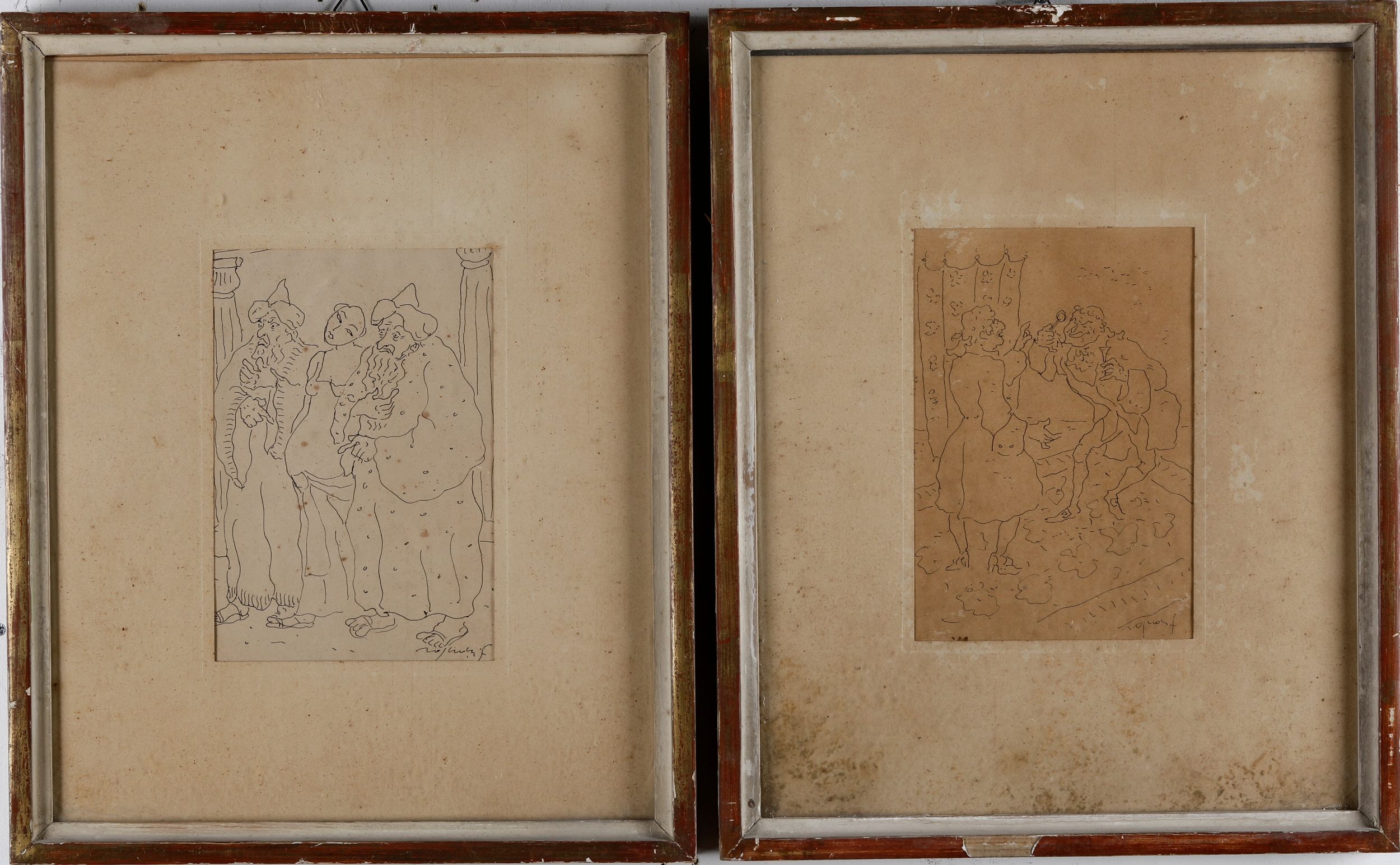 Coppia di disegni su carta per le illustrazioni della serie “Romanzi di Voltaire