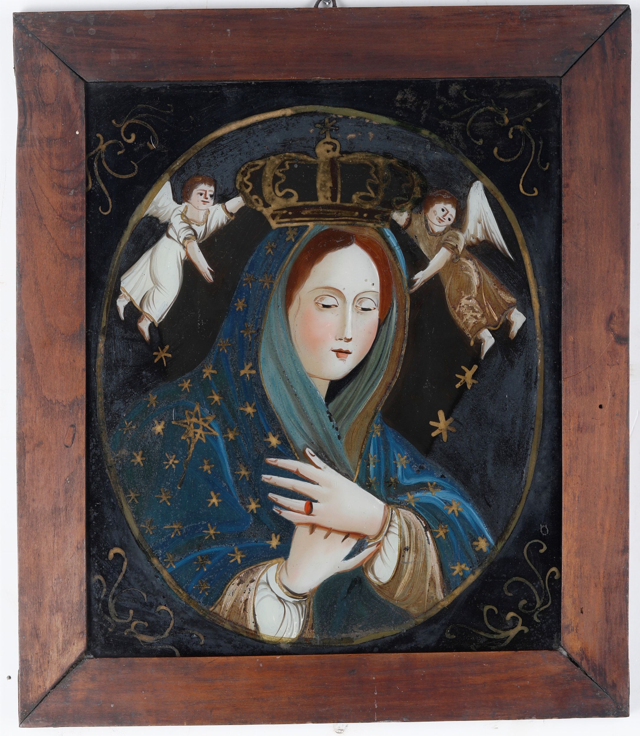 Dipinto sottovetro con Vergine incoronata. Ex Voto. Italia meridionale, XIX seco [..]