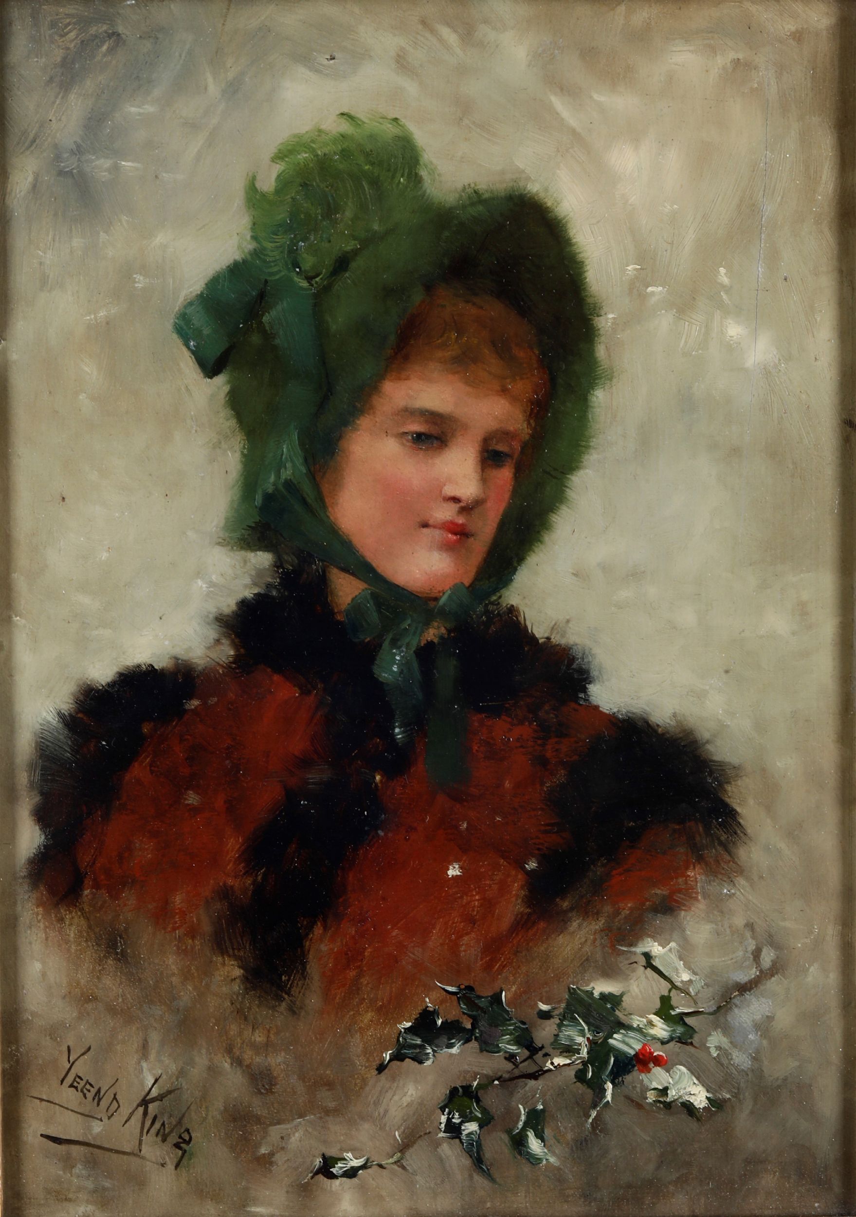 Ritratto femminile con cuffia verde