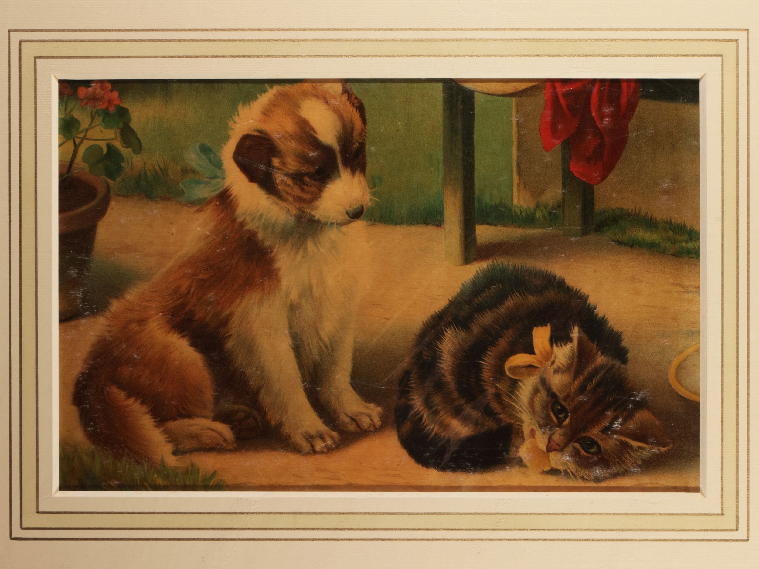 XIX/XX secolo tre cromolitografie, tra cui A frontal attac di Marshall, con passe-partout, tracce di foxing