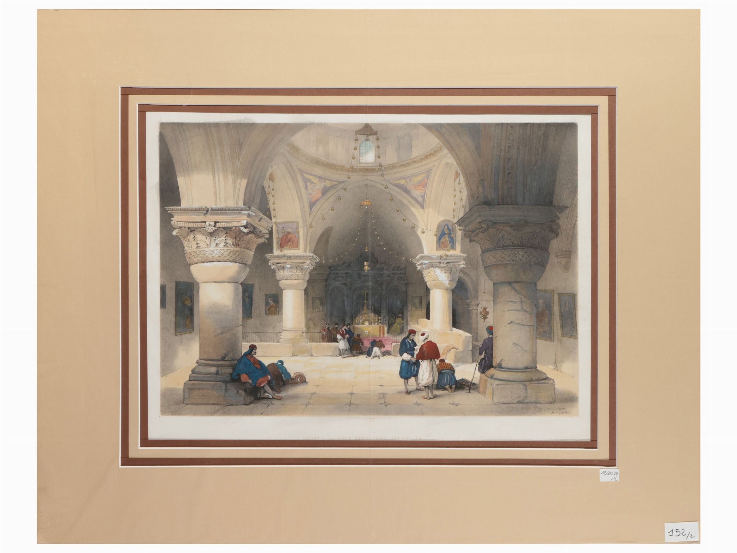 XIX secolo due litografie, firmate in lastra David Roberts, con passe-partout