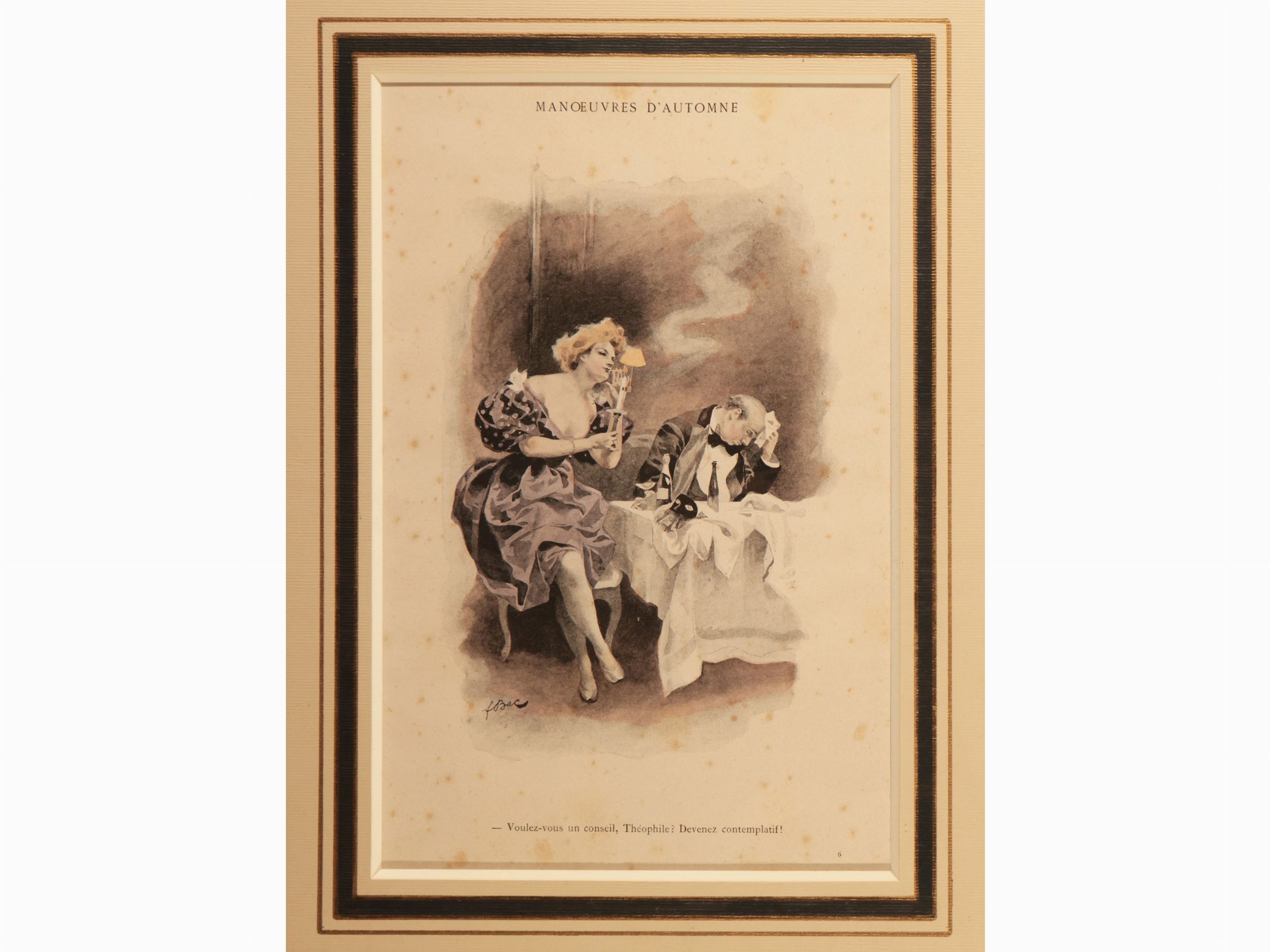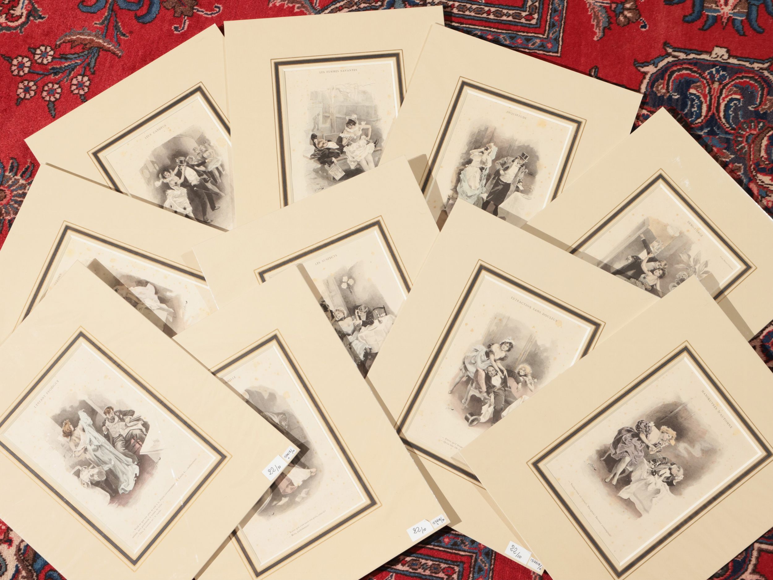 Fine del XIX secolo 10 litografie colorate, con passe-partout, tracce di foxing