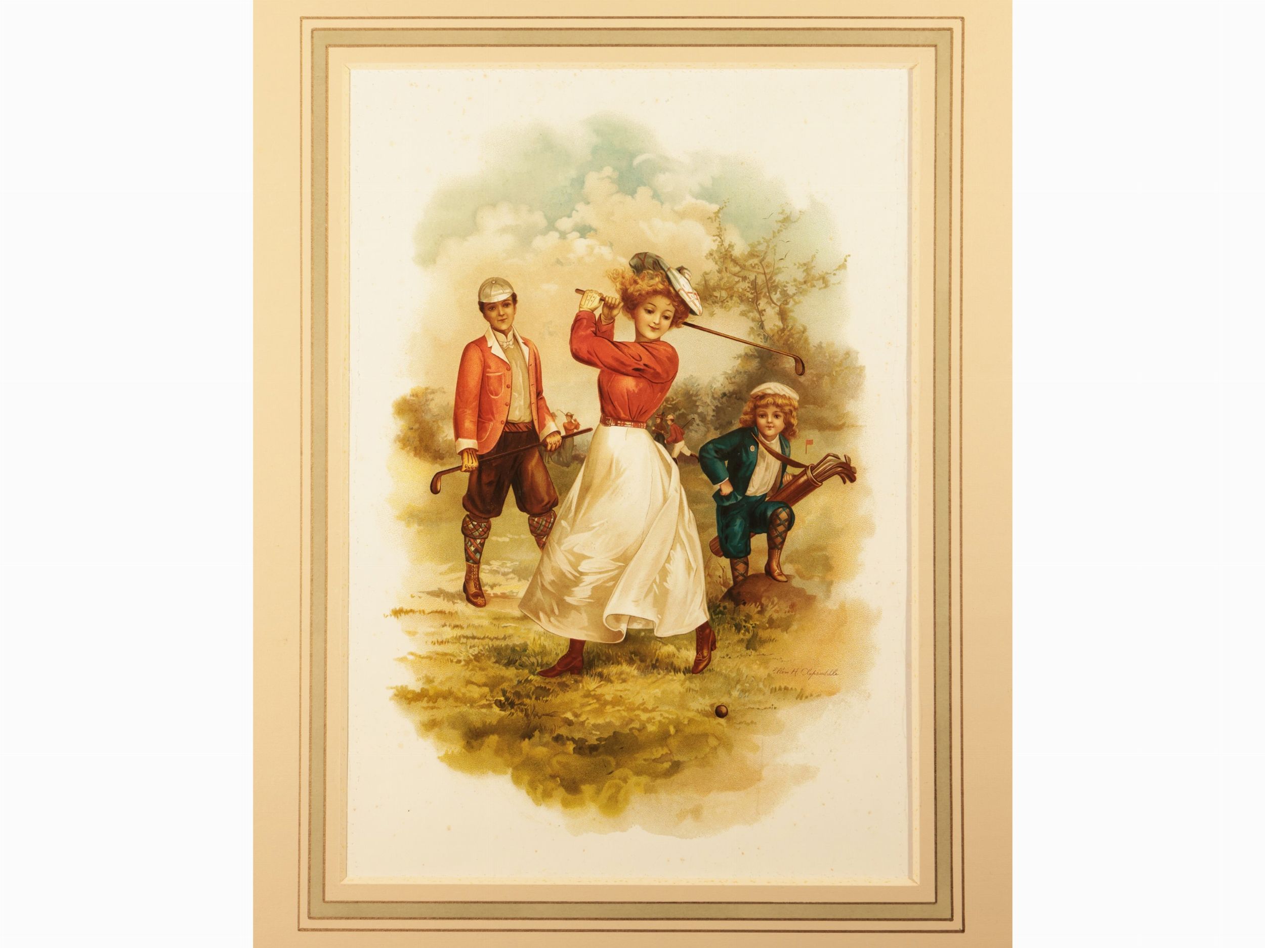 XIX secolo due cromolitografie, con passe-partout, tracce di foxing