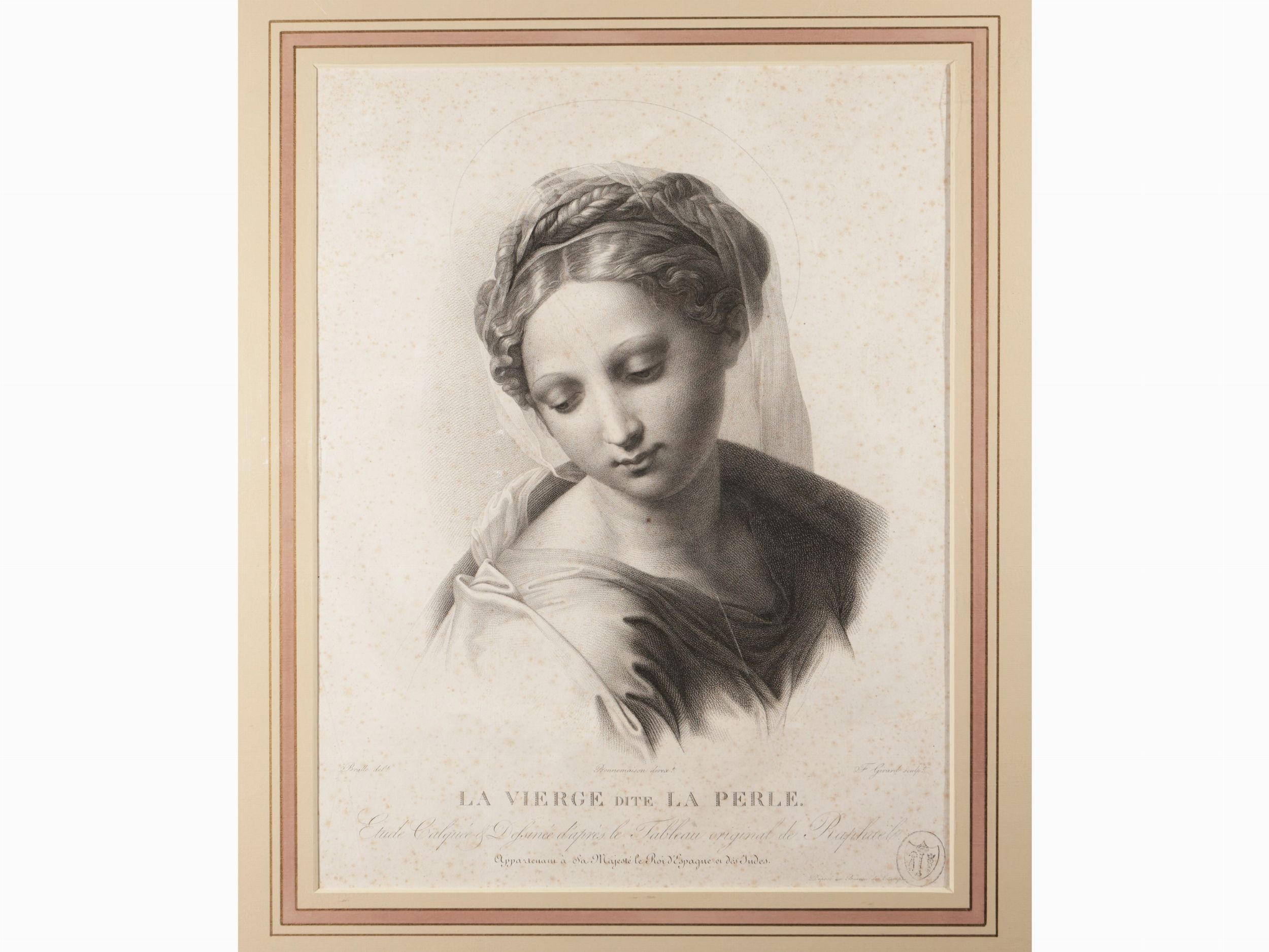 XIX secolo due incisioni di Girard Alexis François da Raffaello, con passe-partout, tracce di foxing