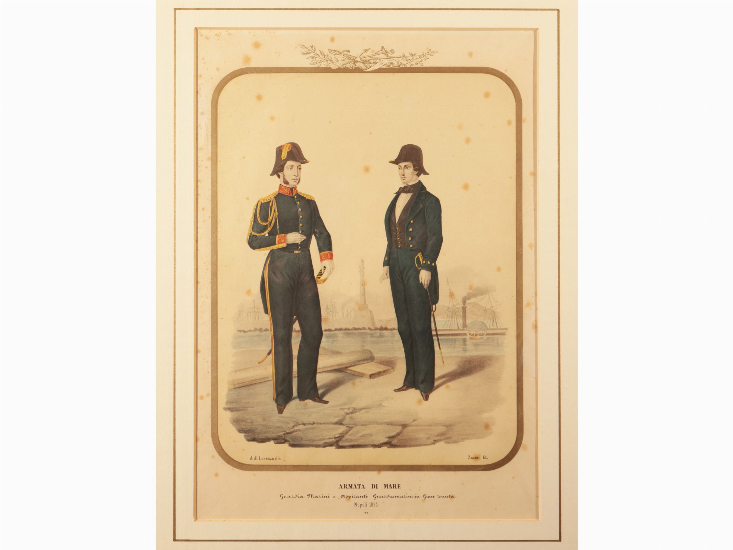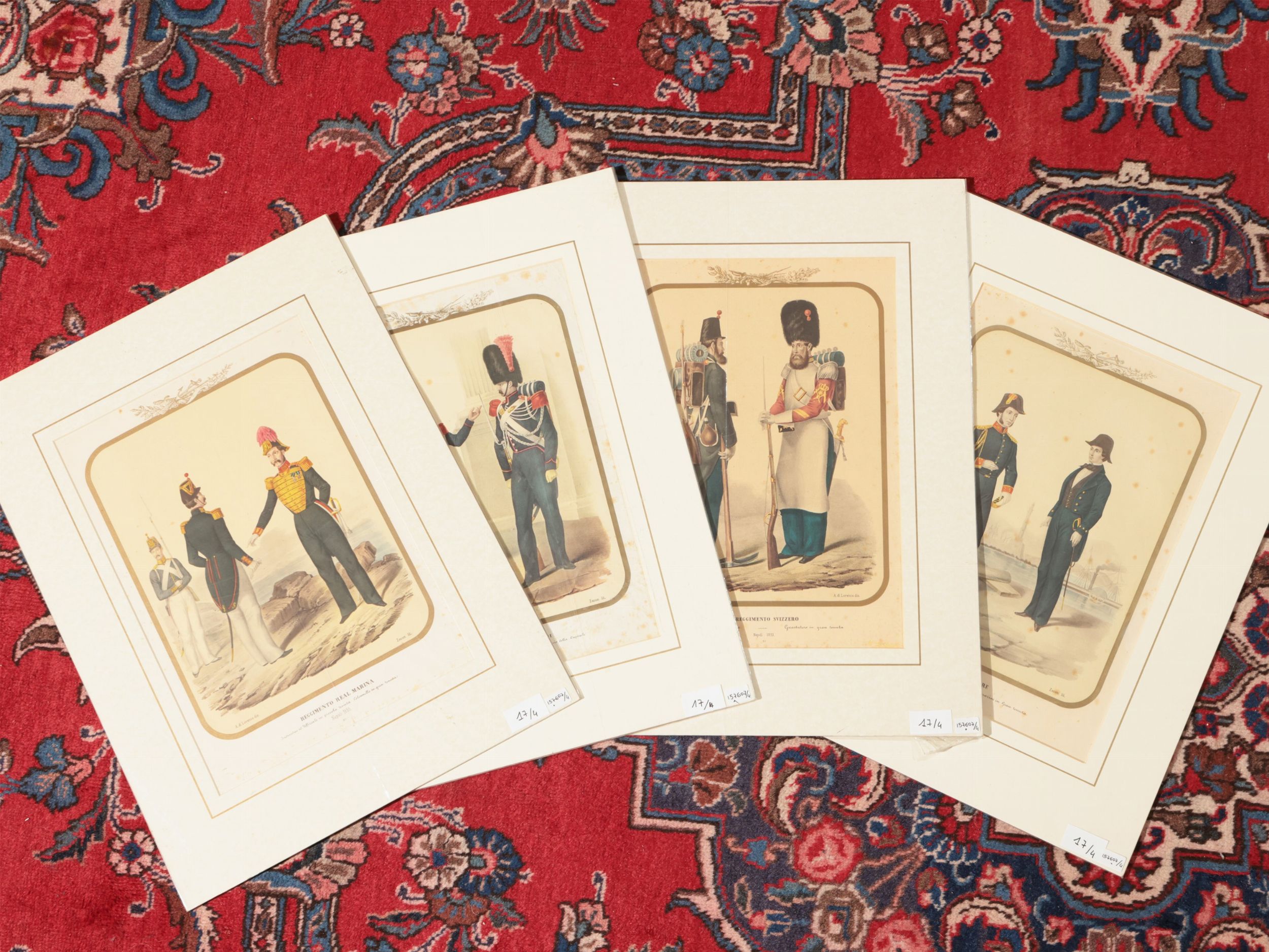 XIX secolo quattro litografie colorate (Di Lorenzo disegnatore), con passe-partout, tracce di foxing