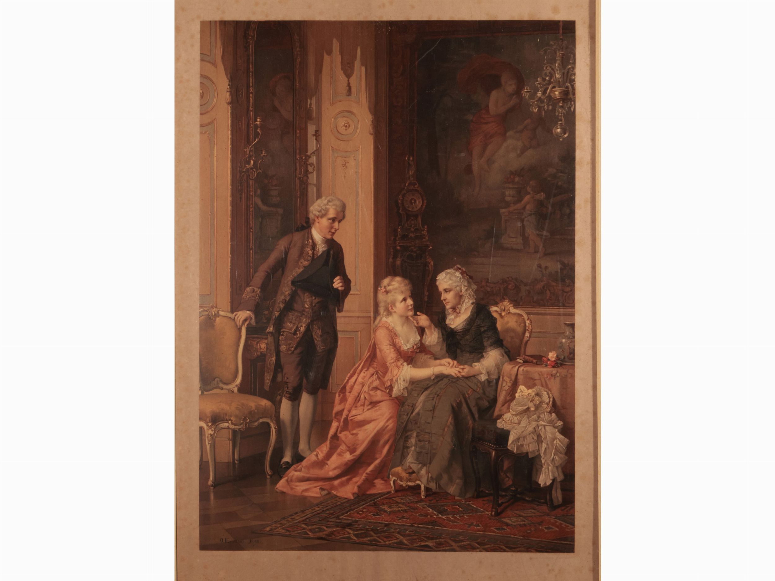 XIX secolo due cromolitografie acquarellate, firmate in lastra O. Erdmann, con passe-partout, tracce di foxing